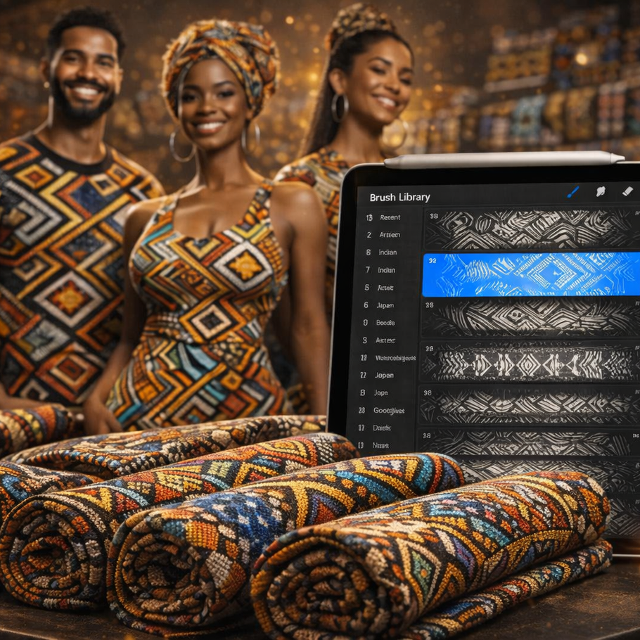 Colección de 160 Pinceles y Patrones textiles africanos Tribales para Procreate